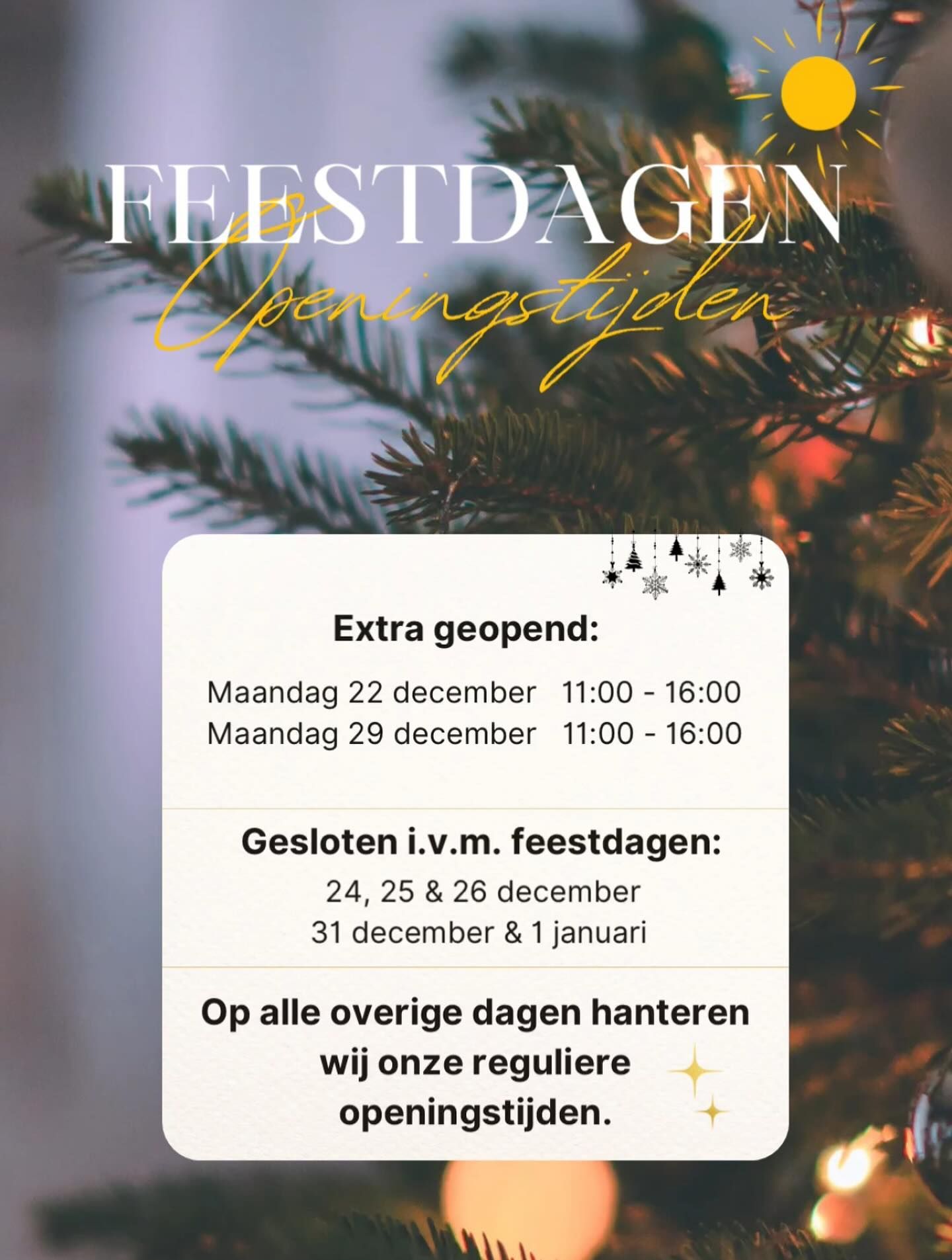 Let op: aangepaste openingstijden tijdens de feestdagen!
